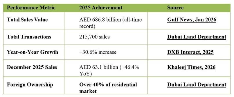 Real estate transactions in 2025 in the Dubai property sector sets the record as it exceeded AED 686.8 billion which records a historic milestone as the highest annual sales value ever recorded. For the same year, i.e. year 2025, Dubai market has set records for luxury and prime residence segments where the boom points that this sector has maintained its form due to strong investor confidence as well as the strong rise of demand of end-users. The following graph by Smart Crowd shows the rise and inflow in Dubai sales in year 2025.