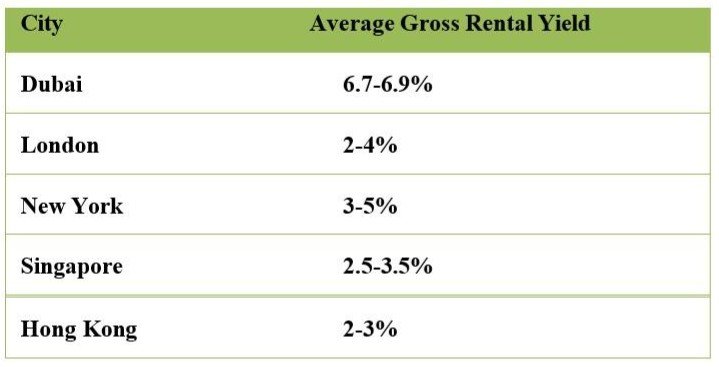 Dubai consistently delivers rental yields that outperform major global cities: