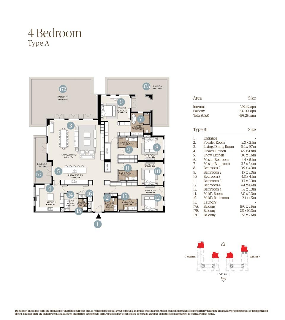 LEVEL 05 | - | Type A | 495.25 Sq Mtr | Apartment |