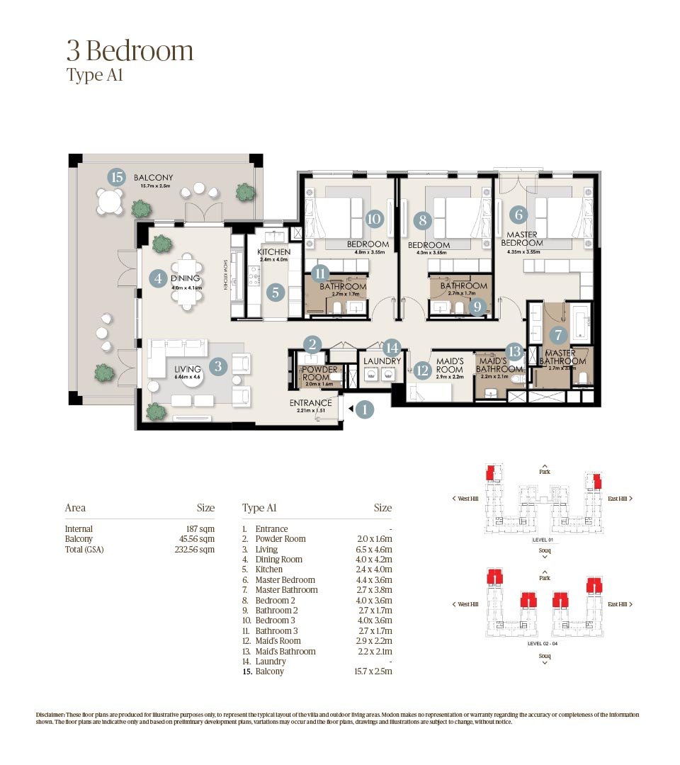 LEVEL 01-04 | - | Type A1 | 232.56 Sq Mtr | Apartment |