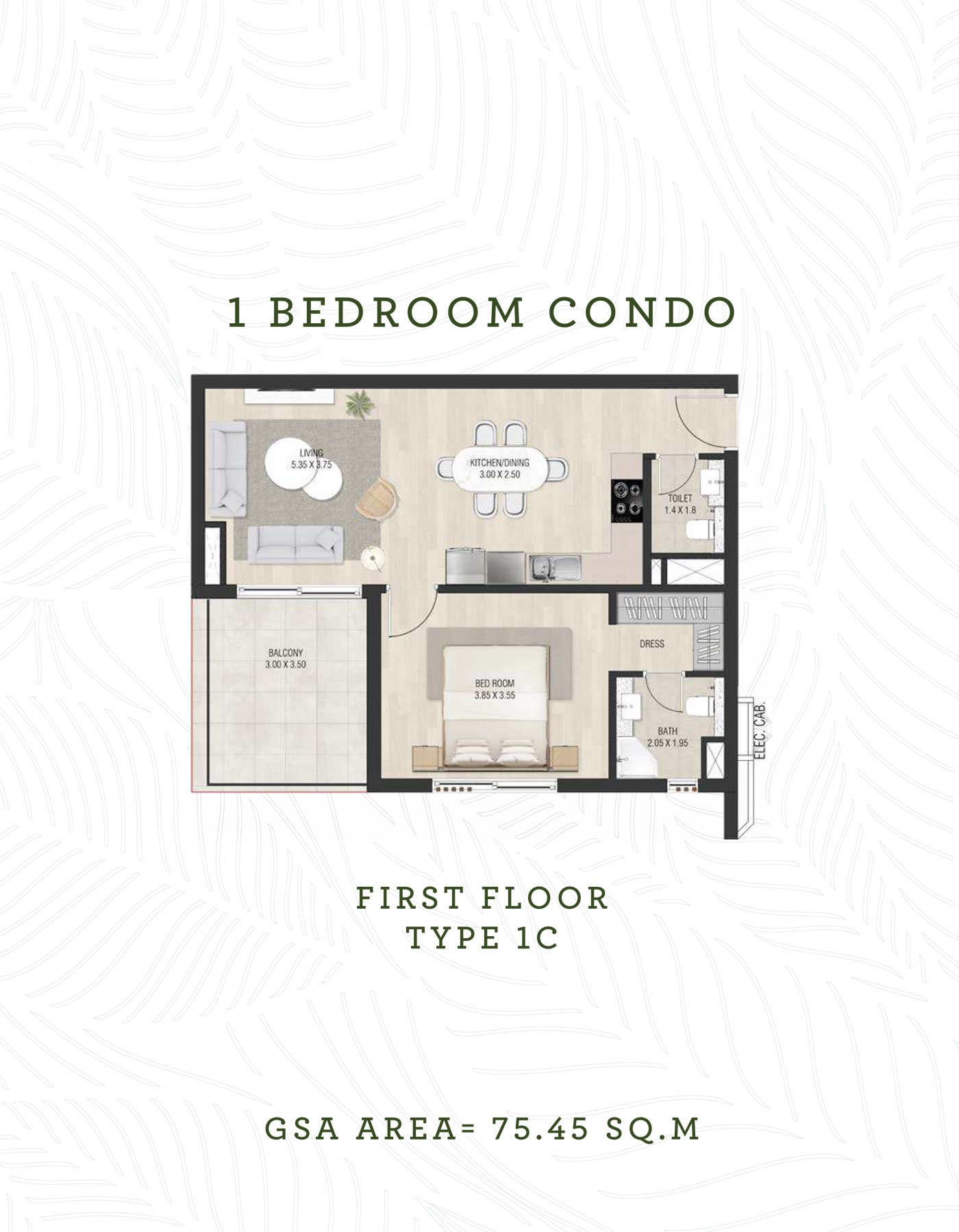 1 Bedroom | - | First Floor, Type 1C | 75.45 Sq Mtr | Condominiums |
