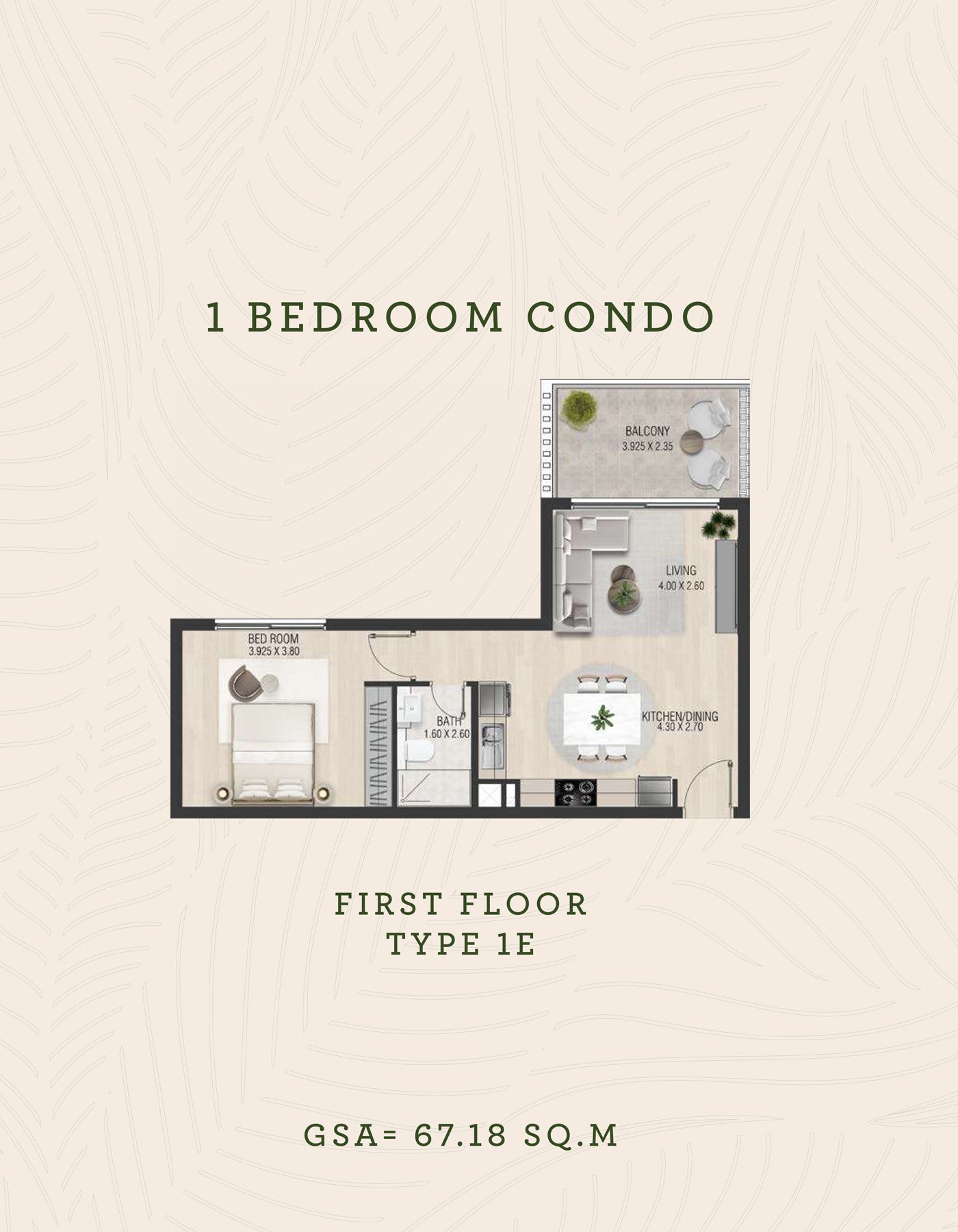 1 Bedroom | - | First Floor, Type 1E | 67.18 Sq Mtr | Condominiums |