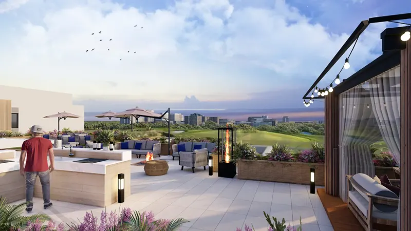 Discover the pinnacle of luxury and modern sophistication with Golf View Living, an esteemed project by Takmeel Real Estate that offers a selection of 1, 2, and 3-bedroom apartments. Located in the vibrant Al Zorah area of Ajman, this development represents more than just a residence; it embodies a lifestyle curated for those who value the finer aspects of life. With breathtaking views of the skyline, expansive greenery of the Al Zorah Golf Course, and the tranquil mangroves that surround the area, it ensures an extraordinary living experience. A key highlight is its exceptional location in Al Zorah, Ajman, providing residents with seamless access to major roadways and essential amenities. This central location not only facilitates easy connectivity to the dynamic urban scene but also preserves a peaceful atmosphere away from the city's hustle and bustle. The closeness to prominent local attractions, such as Zorah Beach and Marina 1 Al Zorah, further enhances the allure of this residential offering. Whether you desire a leisurely day at the beach or an exciting night at the marina, everything you seek is conveniently nearby. This modern development comprises two G+5 buildings, each featuring exquisitely designed living spaces. The residences are crafted with an emphasis on contemporary aesthetics and superior finishes, ensuring that each apartment radiates luxury and sophistication. From the moment you enter, the design reflects a dedication to high-quality living, merging functional elegance with cutting-edge style. The architectural excellence is accentuated by its award-winning design, meticulously created by renowned architect Lucy De Vito, who has ensured that every detail is flawlessly executed. The outcome is a collection of homes that are not only visually striking but also practical, providing a living space that combines beauty with functionality. Additionally, the façade incorporates smart apartment technology, tailored for a convenient lifestyle. This technological integration allows residents to enjoy a heightened level of convenience and control over their living environment. Whether adjusting the lighting, managing the climate, or overseeing security features, the smart technology embedded within these apartments enriches the overall living experience. The proximity to this world-class golf course not only enhances the appeal of the location but also offers residents opportunities for leisure amid lush green surroundings.