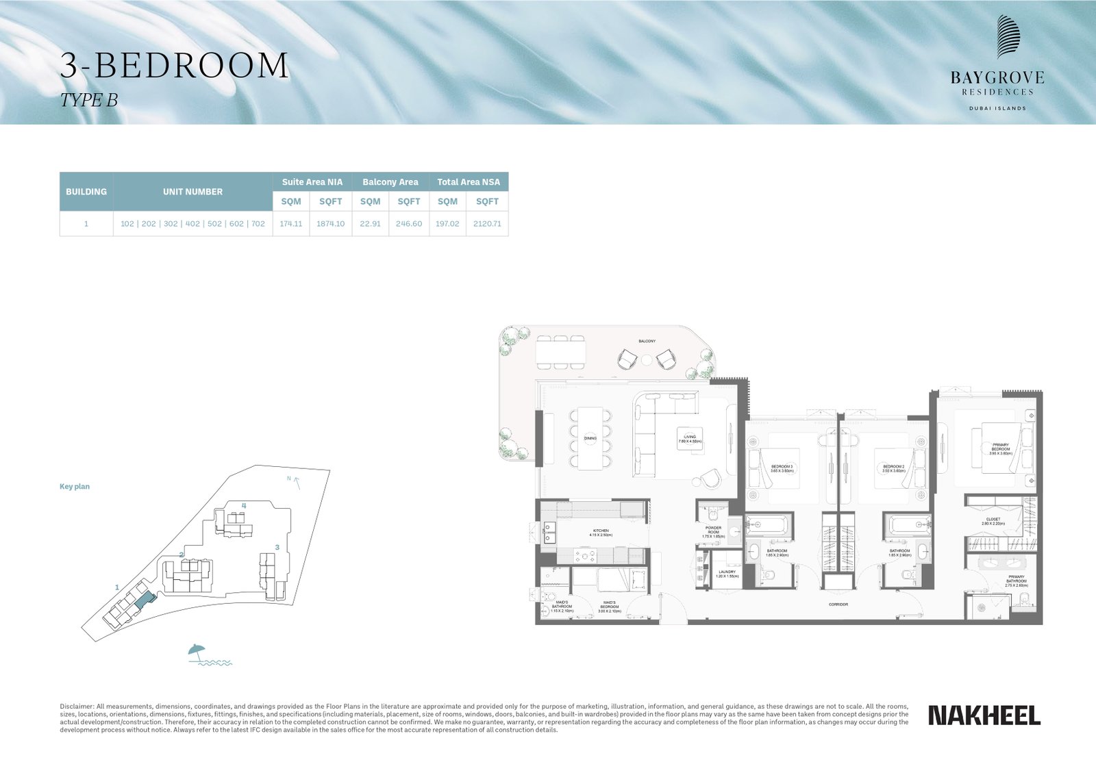 3 Bedroom | - | Type B - Building 1 | 2120.71 Sq Ft | Apartment |