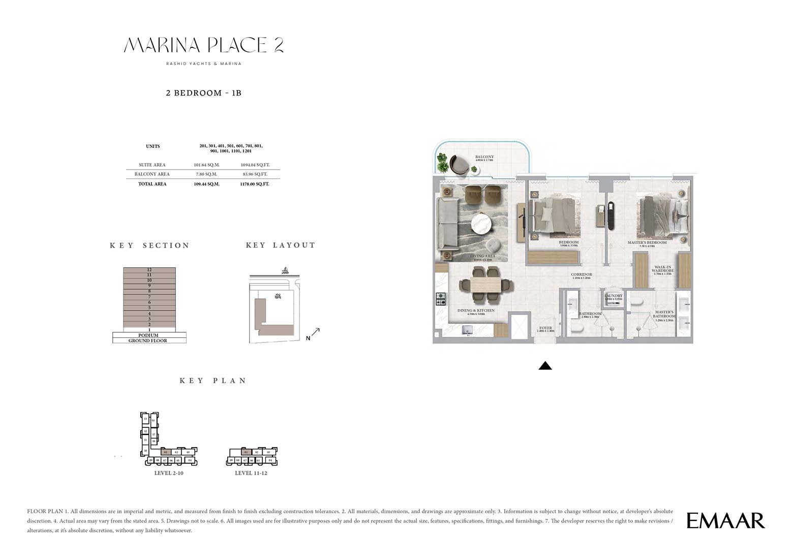2 Bedroom | - | Type 1B | 1178.00 Sq Ft | Apartment |