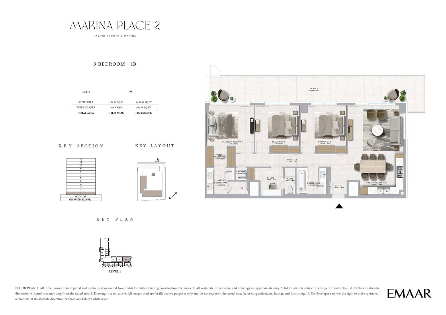 3 Bedroom | - | Type 1B | 1954.83 Sq Ft | Apartment |