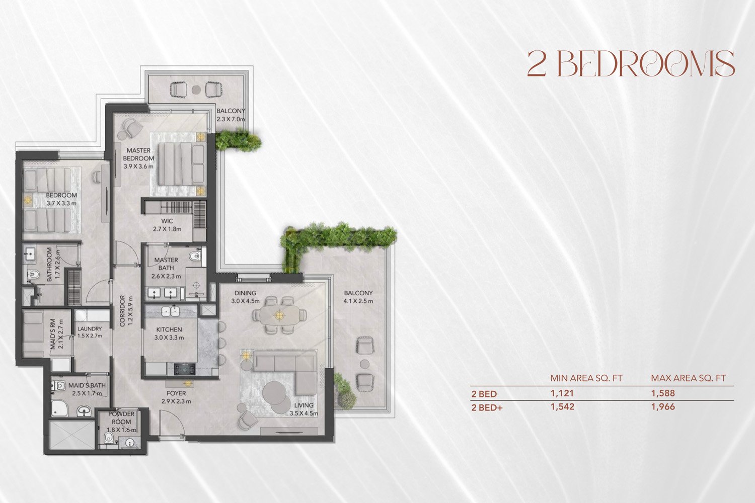 2 Bedroom | - | 2 Bedroom | 1966.00 Sq Ft | Apartment |