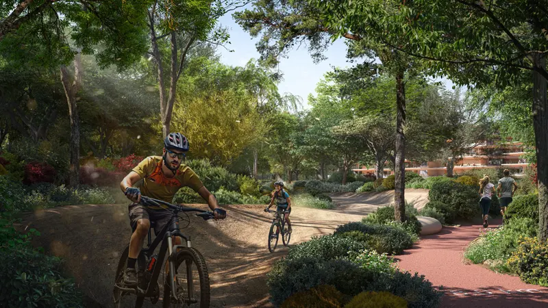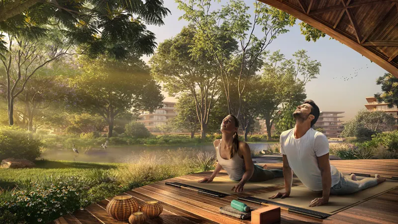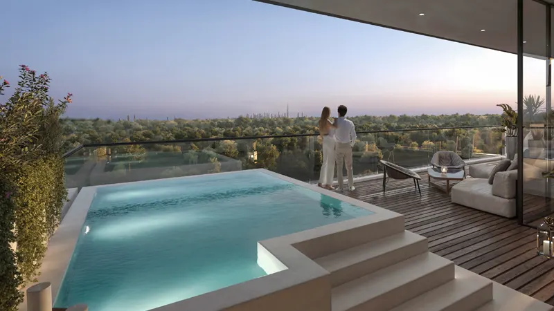 Introducing Ghaf Woods by Majid Al Futtaim, a pioneering residential community situated in Dubai, offering a selection of 1, 2, and 3-bedroom apartments. This premium development spans five to six floors and features uniquely designed limited residences that redefine luxury living by merging sustainability, innovation, and exceptional comfort within the vibrant landscape of Dubailand. Conveniently located adjacent to Global Village and bordered by Sheikh Mohammed Bin Zayed Road and Sheikh Bin Hamdan Al Nahyan Street, it provides outstanding connectivity to various areas of Dubai, establishing it as a prime location for both residence and investment. This distinctive community aims to become one of Dubai’s top 10 must-visit destinations, harmonizing urban convenience with the tranquility of nature. The design prioritizes pedestrian-friendly spaces, incorporating innovative common areas and discreet underground parking, thereby enhancing safety and convenience while promoting easy navigation and a strong bond with the natural environment. Environmental sustainability is fundamental to the project, featuring abundant greenery and strategically placed trees that create a cooler microclimate, with temperatures up to 5°C lower than surrounding areas. This natural cooling effect is further enhanced by cleaner air, which is 20% purer than that found in other Dubai neighborhoods, making Ghaf Woods an ideal choice for health-conscious property buyers.