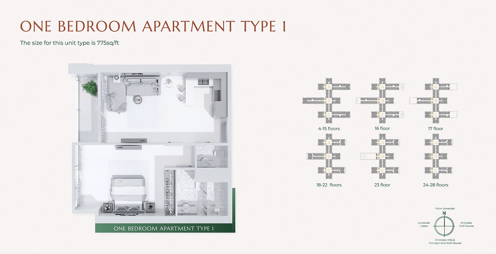 1 Bedroom | - | 1 Bedroom Type 1 Size 775 sq ft | 775.00 Sq Ft | Apartment |