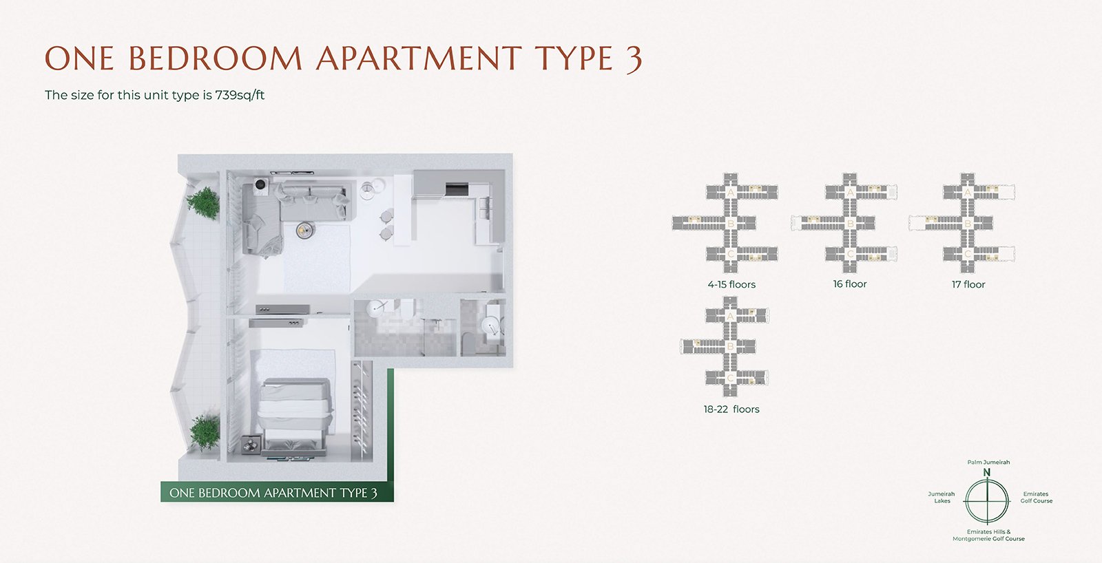 1 Bedroom | - | 1 Bedroom Type 3 Size 739 sq ft | 739.00 Sq Ft | Apartment |