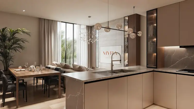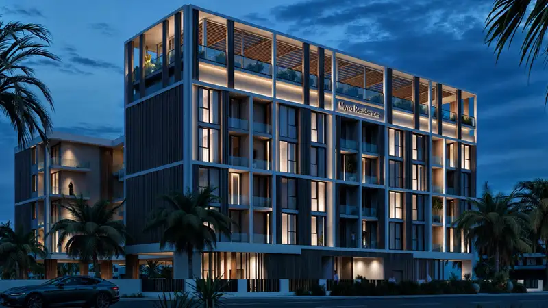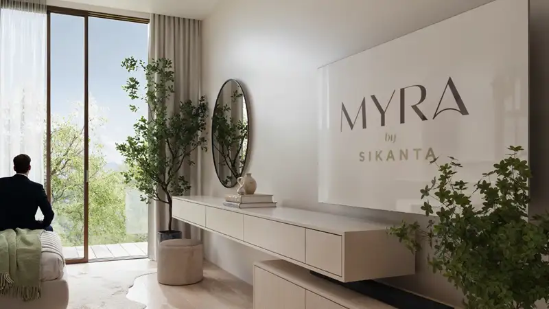 Myra Residences by Sikanta Developments represents a low-rise, premium living experience in Dubai South, offering a selection of studios, one-bedroom, and two-bedroom apartments. Imagine waking each morning to the gentle touch of tropical breezes flowing through beautifully landscaped courtyard gardens, stepping out onto a spacious balcony that provides a glimpse of the skyline. This residence is designed for effortless living, featuring a limited collection of 64 meticulously crafted homes that blend elegant simplicity with delightful surprises. Every detail—from materials to sightlines—has been thoughtfully chosen to enhance the experience, evoking the charm of a small exclusive resort. The development emphasizes a more human scale and rich sensory experience, featuring lush greenery, water features that weave between structures, and rooftop areas that elevate ordinary afternoons into memorable moments. This is more than just housing; it’s an invitation to enjoy a leisurely lifestyle amidst a bustling city, trading stress for the joy found in intricate details. Situated at the heart of one of Dubai South's most ambitious masterplans, this address positions itself as a hub for logistics, leisure, education, and commerce, conveniently close to future economic drivers. The area's connectivity is exceptional, with a well-planned density for retail, several schools—including the GEMS Founders School—and quick access to Expo City and key logistics hubs. Long-term investors are attracted by Dubai's growing population and the potential for both transactional and rental growth. The design promotes a sense of warmth and openness, favoring terraces and landscaped setbacks that allow street-level and balcony living spaces to bask in light and fresh air. The planning incorporates tropical elements with interconnected pools, circulation pathways, and lush garden areas that create a seamless living environment. The materials chosen for the development are modern and cohesive, featuring warm stone, textured plaster, and glass, all used to create a captivating interplay of shadow and texture rather than grand gestures. Communal spaces, such as the lobby and rooftop deck, are designed to extend the comfort of home, fostering an inviting atmosphere rather than merely serving as transit points. The leisure amenities are thoughtfully integrated both vertically and horizontally, with interlocking pools that flow through garden pockets at the podium level, while the upper area serves as a social hub with skyline views, a roof pool, and designated deck spaces. Family-oriented amenities include children's play areas and safe, landscaped courtyards, ensuring that the entire project caters to multiple generations. A well-equipped gym with locker rooms supports an active lifestyle without necessitating travel outside the community. The overarching theme emphasizes tranquility over spectacle, utilizing water and greenery to soften corners, slow down movement, and create serene retreats for reading, stretching, or socializing. The arrival experience and lobby design evoke the feeling of entering a boutique hotel rather than an apartment building, reinforcing the concept that relaxation within this development is an integral part of daily life, not reserved for special occasions. Key highlights include spacious floor plans ranging from efficient studios to expansive two-bedroom apartments with practical layouts, an exclusive residential retreat comprising only 64 thoughtfully designed homes that blend individuality with community appeal, and a prime location in Dubai South, a forward-thinking hub of connectivity and sustainable urban development. The tropical-inspired architecture is enhanced by lush landscapes and flowing water features that create a resort-like ambiance, while the human-centered design prioritizes natural light, unobstructed views, and seamless indoor-outdoor living. Rooftop leisure spaces boast a sky pool, lounge deck, and breathtaking city views, alongside family-friendly amenities that encompass children's play areas, dedicated pools, and safe, inviting courtyards.