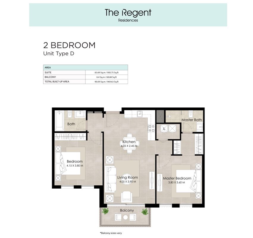 2 Bedroom | - | Unit Type D | 969.63 Sq Ft | Apartment |