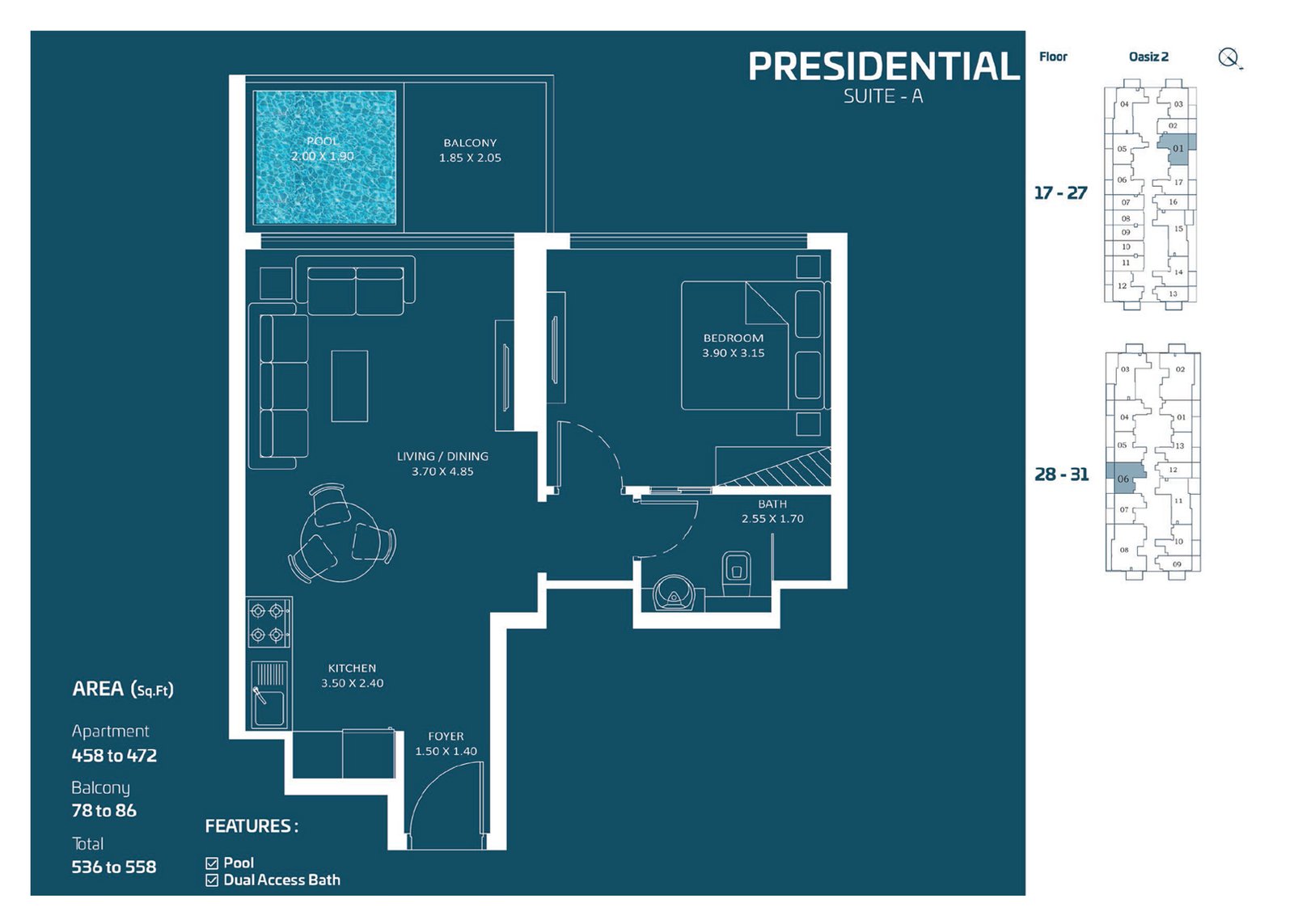 17th to 31st Floor | - | Presidential Type A | 558.00 Sq Ft | Apartment |