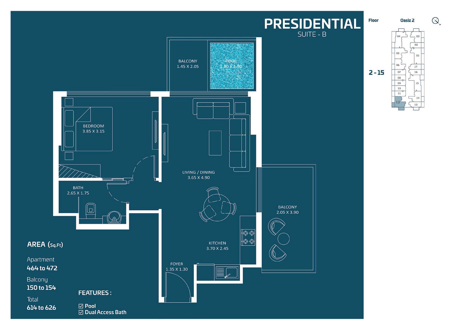 2nd to 15th Floor | - | Presidential Type B | 626.00 Sq Ft | Apartment |