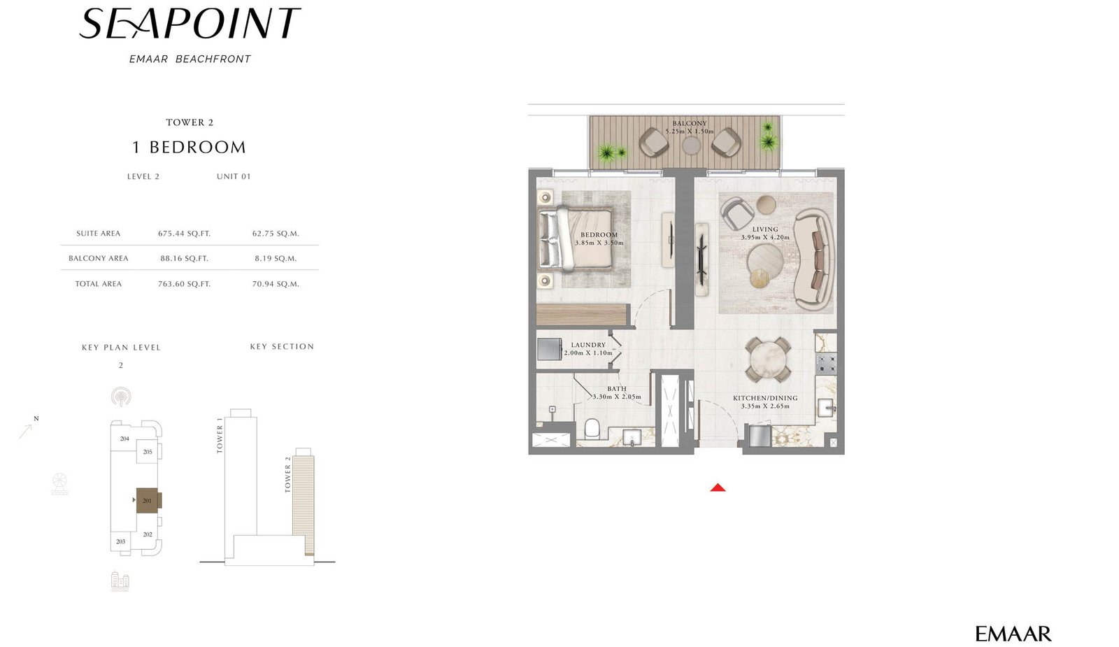 Tower 2 | - | Unit 1, Level 2 | 763.60 Sq Ft | Apartment |