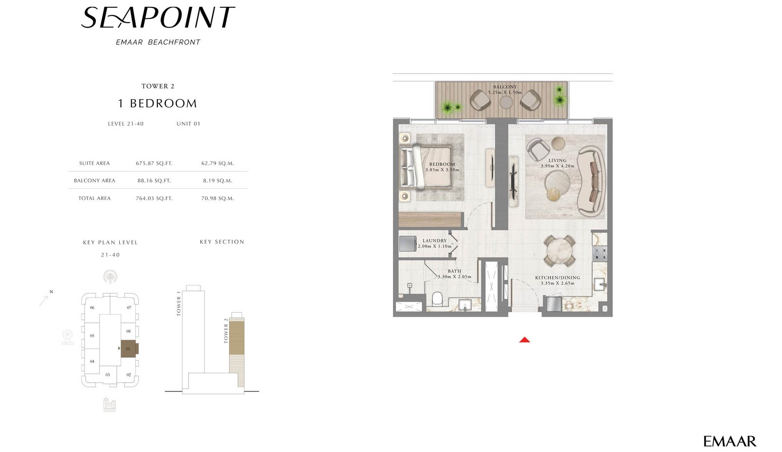 Tower 2 | - | Unit 1, Level 21-40 | 764.03 Sq Ft | Apartment |