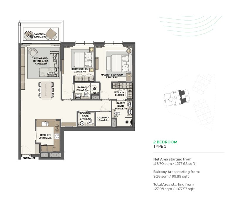 Layout | - | Type 01 | 1377.57 Sq Ft | Apartment |