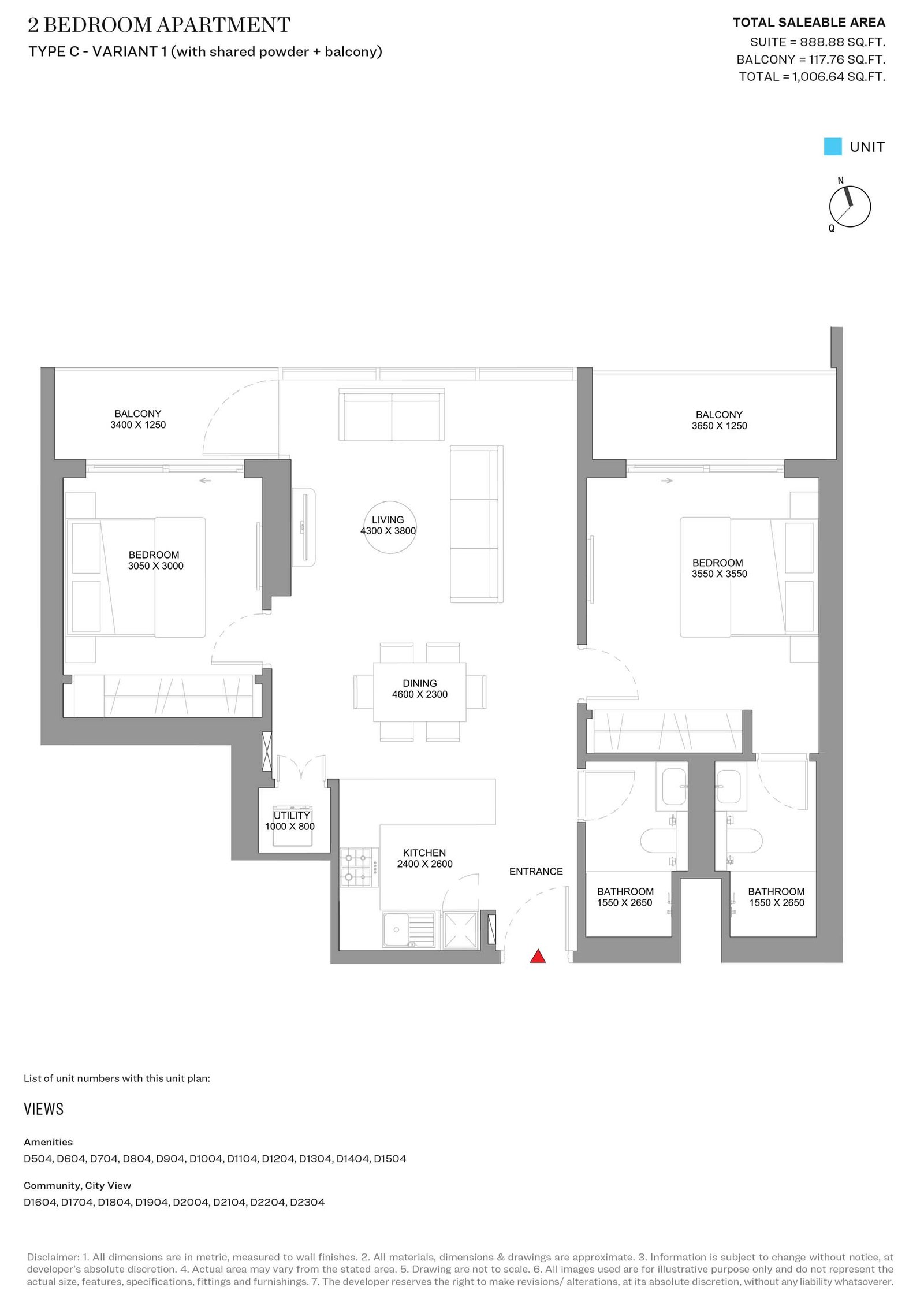 Level 05-23 | - | Type C-Variant 1 | 1006.64 Sq Ft | Apartment |