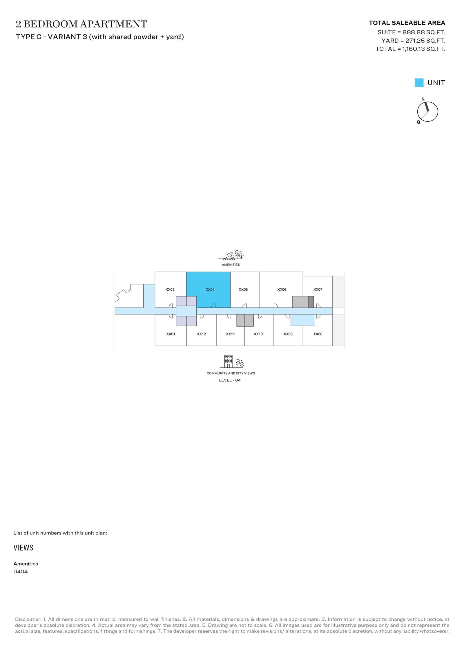 Level 04 | - | Type C-Variant 3 | 1160.13 Sq Ft | Apartment |