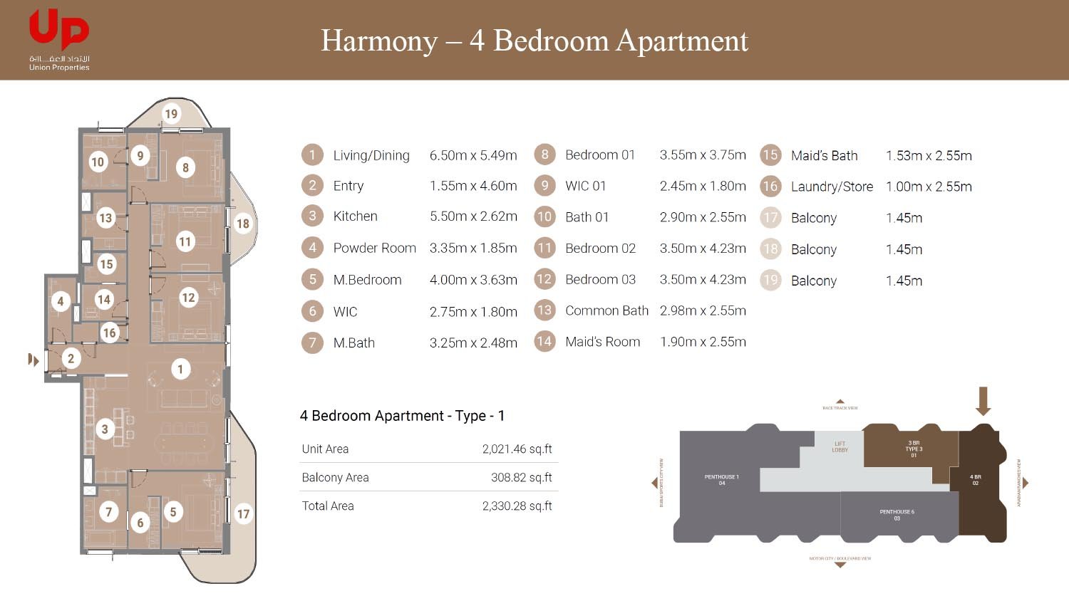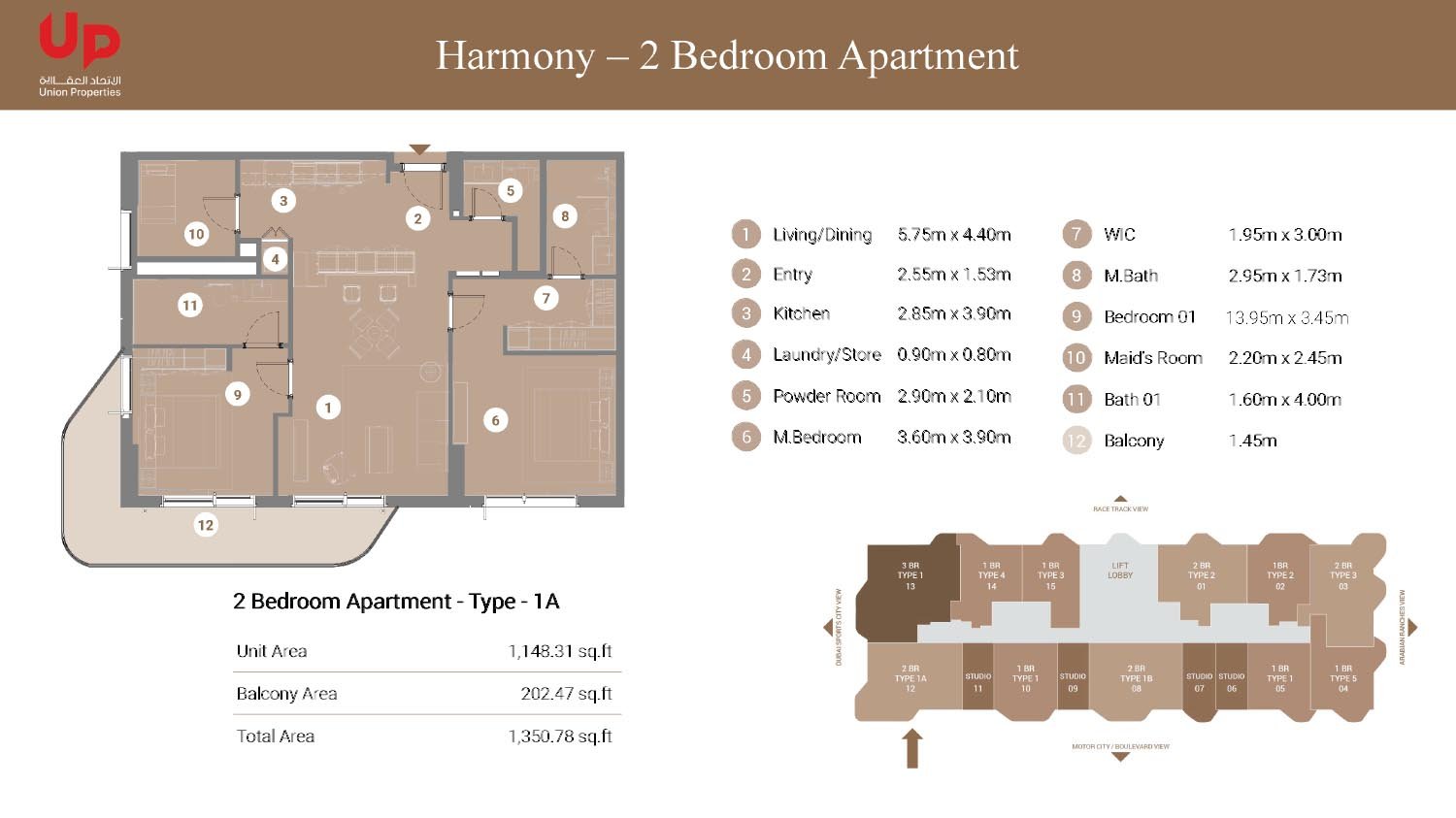 Takaya Harmony Tower at Motor City represents a significant addition to the Takaya development by Union Properties, featuring a selection of luxury apartments in Dubai. This modern 20-story high-rise serves as an architectural landmark that flawlessly merges style, comfort, and convenience. It goes beyond mere living spaces; it embodies a lifestyle destination crafted to provide a comprehensive living experience for its residents. From the tastefully designed lobby to the spacious apartments adorned with premium finishes, every detail reflects a dedication to quality and luxury. As an integral part of the broader development, the tower connects through podium levels that promote a lively community atmosphere. These podiums house an extensive array of shopping, dining, and leisure options, enabling residents to embrace an active social lifestyle without venturing far from home. With a diverse selection of retail stores, cafes, and fine dining establishments just an elevator ride away, residents can revel in a unique urban experience focused on convenience and enjoyment. In addition to the podium amenities, the tower provides a range of exclusive in-house facilities tailored to various interests. An infinity pool offers a tranquil retreat with breathtaking views, while a dedicated leisure pool, children's pool, and outdoor sports courts present opportunities for family-friendly fun and fitness. Indoor facilities include a fully equipped gym, co-working spaces, an arcade lounge, a cinema room, and a multipurpose room, ensuring that residents of all ages have ample options to relax, connect, and thrive.
