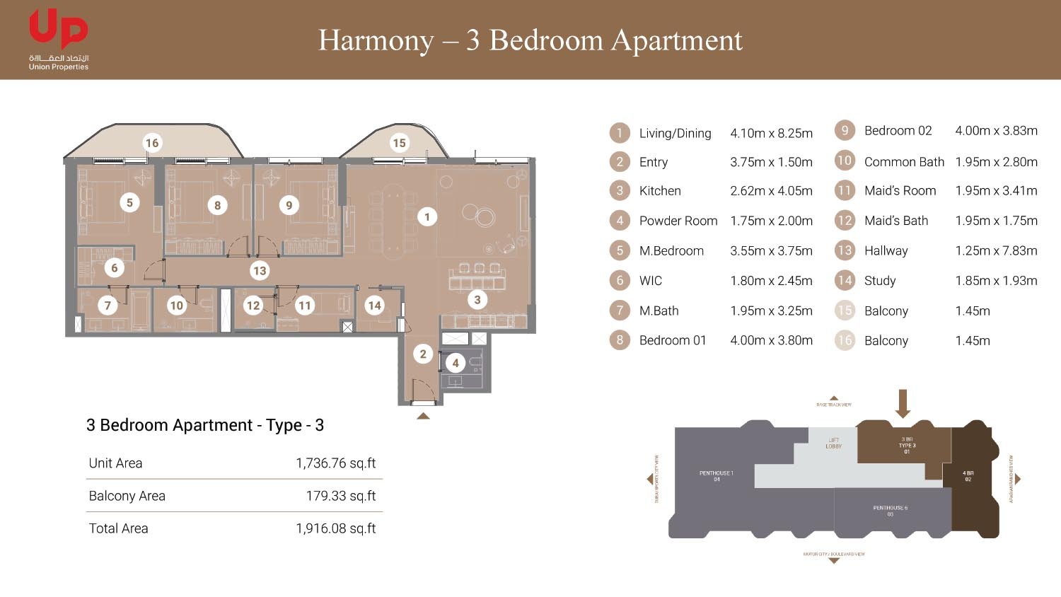 Layout Plan - Type-3 1916.08 Sq Ft Apartment