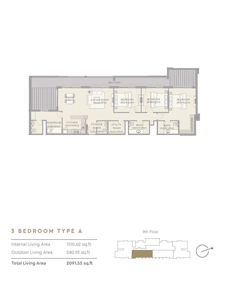 9th Floor | - | Type A | 2091.55 Sq Ft | Apartment |