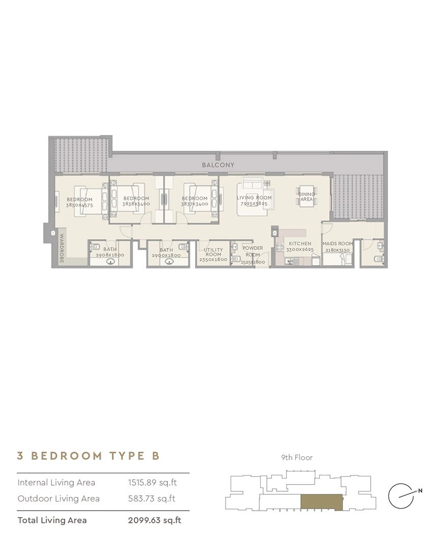 9th Floor | - | Type B | 2099.63 Sq Ft | Apartment |