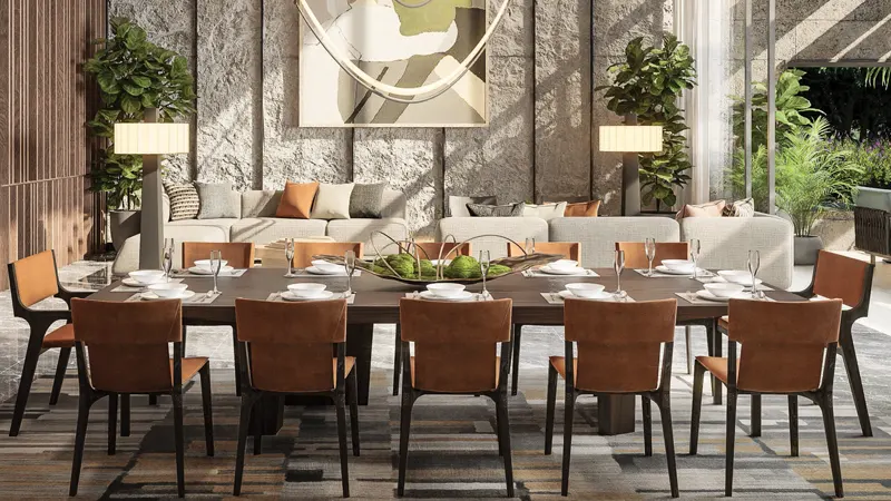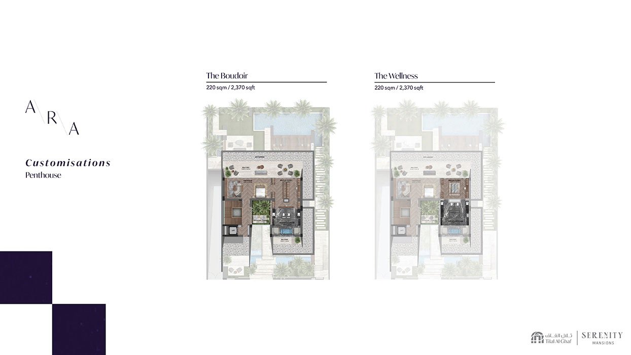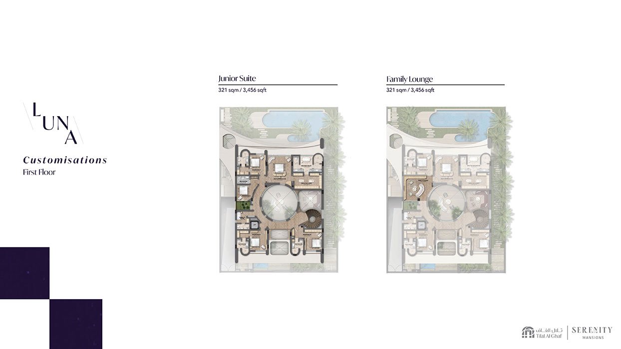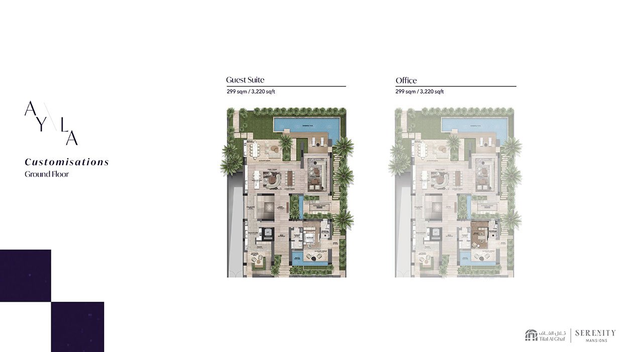 Serenity Mansions at Tilal Al Ghaf represents the latest architectural achievement by Majid Al Futtaim, offering an unparalleled collection of luxurious five-bedroom mansions. The relentless pursuit of luxury is embodied in three distinctive design styles: Luna, Ayla, and Ara, crafted by internationally recognized design firms. This exclusive development is beautifully situated around stunning lagoons and pristine white sandy beaches. The project enjoys a prime location within Tilal Al Ghaf, one of Dubai's most desirable communities, providing residents with easy access to major business districts, educational institutions, and recreational amenities. Every element of design and architecture has been thoughtfully created to achieve a perfect balance between aesthetics and functionality. The visionary architects have skillfully used the expansive landscape of Tilal Al Ghaf to develop an enchanting environment that harmoniously integrates with nature. The exterior facades of the residences radiate grandeur and sophistication, while the interiors reflect meticulous attention to detail, showcasing the essence of modern luxury. Residents are invited to experience a lifestyle that elevates luxury living, complete with a comprehensive range of amenities and services tailored to meet the needs of discerning individuals. The development features beautifully landscaped gardens, peaceful walking trails, and tranquil water features, establishing a serene oasis within the vibrant city. Residents can engage in various recreational activities at a state-of-the-art fitness center, unwind at a luxurious spa, or enjoy a refreshing swim in the immaculate swimming pool and lagoon area. For those seeking entertainment and social interaction, the project includes private movie theaters, exclusive lounge spaces, and elegant event venues for hosting gatherings and celebrations. Key highlights include an exclusive collection of five-bedroom mansions, a prime location with excellent connectivity at Tilal Al Ghaf, signature designs by award-winning international architects, inviting white sandy beach areas for water activities, a relaxing environment with a private lagoon, resort-style living within a walkable neighborhood, and a vibrant community that seamlessly merges nature, leisure, and urban living.