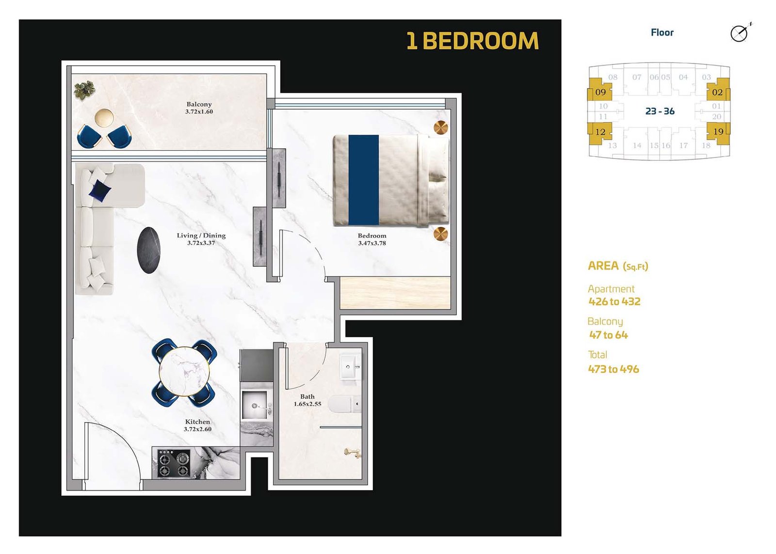 Floors 23-36 | - | 1 BHK | 496.00 Sq Ft | Retail Space |