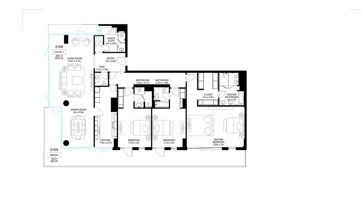 3 Bedrooms - Mamsha-A1-01-01 ,3 Bed-294.00 sq.mt 294.00 Sq Mtr Apartment
