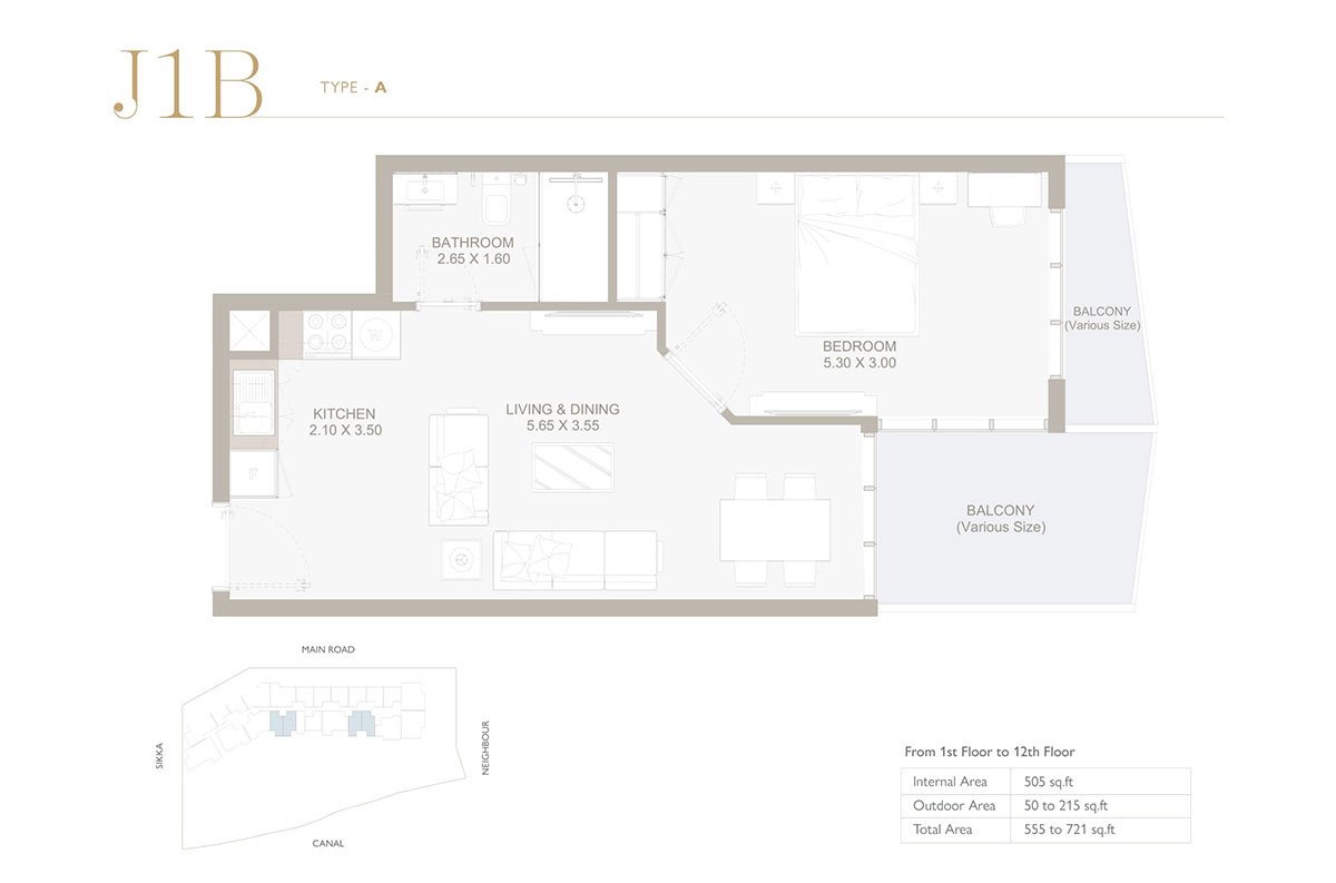 1 Bedroom | - | J1B, Type A | 721.00 Sq Ft | Apartment |