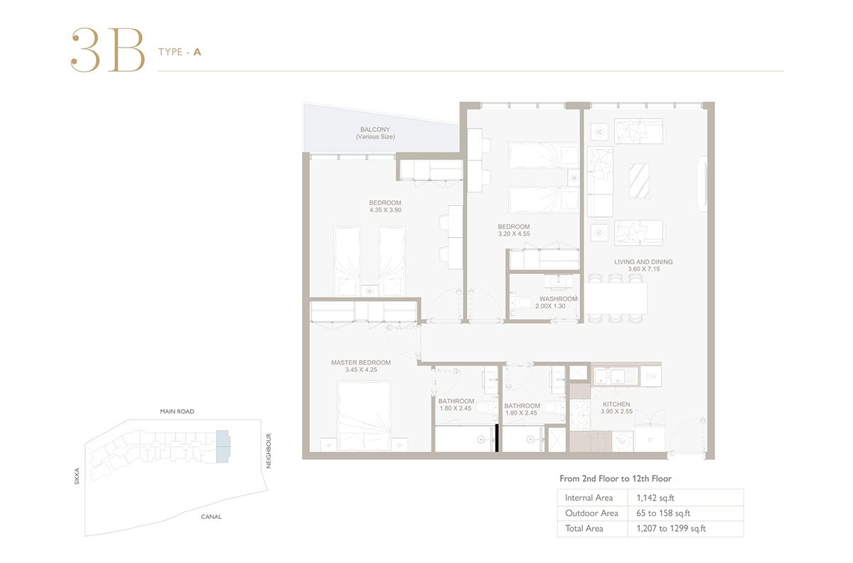 3 Bedroom | - | Type A | 1299.00 Sq Ft | Apartment |