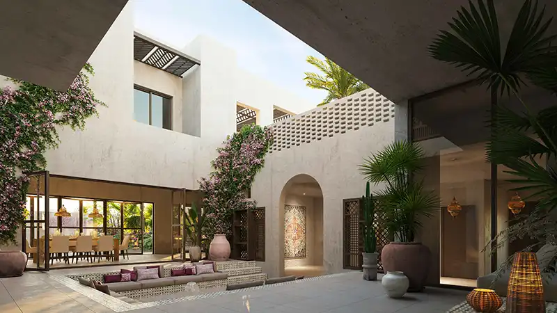 The esteemed developer IMKAN Properties, known for its contributions to the Middle East, introduces Joud Villas within the Aljurf Gardens community. These villas are available in 3, 5, and 7 bedroom configurations, each featuring unique layouts and designs. Drawing inspiration from the rich heritage of traditional Arabic homes, the villas incorporate elements such as courtyards and majlis, fostering intimate and layered living spaces for families. The architectural theme reflects the wild beauty of Aljurf, harmonizing with the area's natural features, including diverse plant life, water elements, varying land levels, textures, and abundant natural light, creating an ideal living environment immersed in nature. This development serves as a sanctuary for residents, offering tranquility, fulfillment, and spiritual enrichment, allowing them to escape the urban hustle within a secure and gated community. The design emphasizes intimate spaces with views of private gardens, complemented by exclusive access to private beaches and coastal shores that separate residents from the outside world. Situated along the pristine coastline of the Emirates, this location embodies imagination, heritage, and natural beauty, exuding timeless charm. Key facilities include a second home destination, a fully integrated community, a turtle sanctuary, and a world-renowned wellness clinic and resort, all strategically located between Abu Dhabi and Dubai.