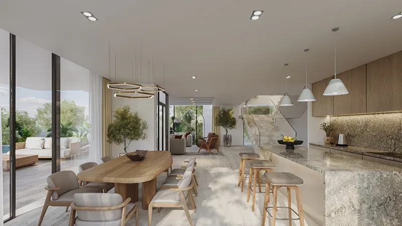 Nawayef Homes at Hudayriyat Island represents the latest residential offering from Modon Properties, featuring premium 3, 4, and 5-bedroom villas in Abu Dhabi. This exclusive development transforms the Abu Dhabi landscape, providing residents with a distinctive and exceptional environment to call their own. Situated amidst gently rolling hills that rise up to 45 meters, Nawayef Homes offers stunning views of the Abu Dhabi skyline and the crystal-clear waters of the Arabian Gulf. The idyllic setting of Hudayriyat Island fosters a lively community that harmoniously blends sports, nature, relaxation, and hospitality. Residents can take advantage of a variety of world-class sports facilities, boutique retail shops, charming cafes, and exquisite dining options, ensuring a fulfilling lifestyle is always within reach. The ambitious project highlights an impressive array of current and upcoming destinations, promising an unmatched lifestyle for residents to engage with and enjoy. The allure of this development is found in its carefully crafted villas, each providing a unique living experience. With six distinct villa types featuring elegantly designed bedrooms, residents can choose from diverse architectural styles, including mid-century modern designs reminiscent of California's Palm Springs and traditional Spanish-inspired villas made with a refined material palette. These villas offer spacious interiors, private pools, and elevated balconies, allowing residents to savor the breathtaking views across Abu Dhabi. In addition to luxurious living spaces, residents benefit from world-class amenities conveniently located at their doorstep. From beach access and playgrounds to a mosque and a clubhouse complete with a gym, spa, and pool, every element of the community is designed to enhance the living experience. Pedestrian paths and cycling routes promote an active lifestyle, while the nearby amenities of Hudayriyat Island, including Marsana Beach, Marina, and OCR Park, provide a wide range of recreational activities for residents to enjoy. With its unique villa designs, exceptional amenities, and close proximity to the vibrant community of Hudayriyat Island, residents have the chance to embrace a life of fulfillment. Whether you desire a peaceful retreat from the fast-paced city life or an active lifestyle immersed in nature and luxury, this development invites you to craft the next chapter of your journey in Abu Dhabi's flourishing real estate market. Key highlights include the choice of six distinct villa types ranging from 3 to 5 bedrooms, each thoughtfully designed to accommodate various lifestyle preferences. Nestled on Hudayriyat Island, this development provides a private sanctuary with breathtaking views of the Abu Dhabi skyline and the Arabian Gulf. Residents can enjoy elevated island living with rolling hills that offer panoramic vistas and a tranquil ambiance. Experience spacious and sophisticated living areas with well-appointed interiors that prioritize natural light and ventilation, creating a serene retreat. Flexible payment options are available to suit individual needs, ensuring a smooth purchasing process and investment opportunity. Enjoy direct access to pristine beaches for relaxation, water sports, and the beauty of the coastline. Finally, indulge in luxury at the clubhouse, featuring a state-of-the-art gym, spa facilities, and a serene pool area designed for ultimate relaxation and wellness.
