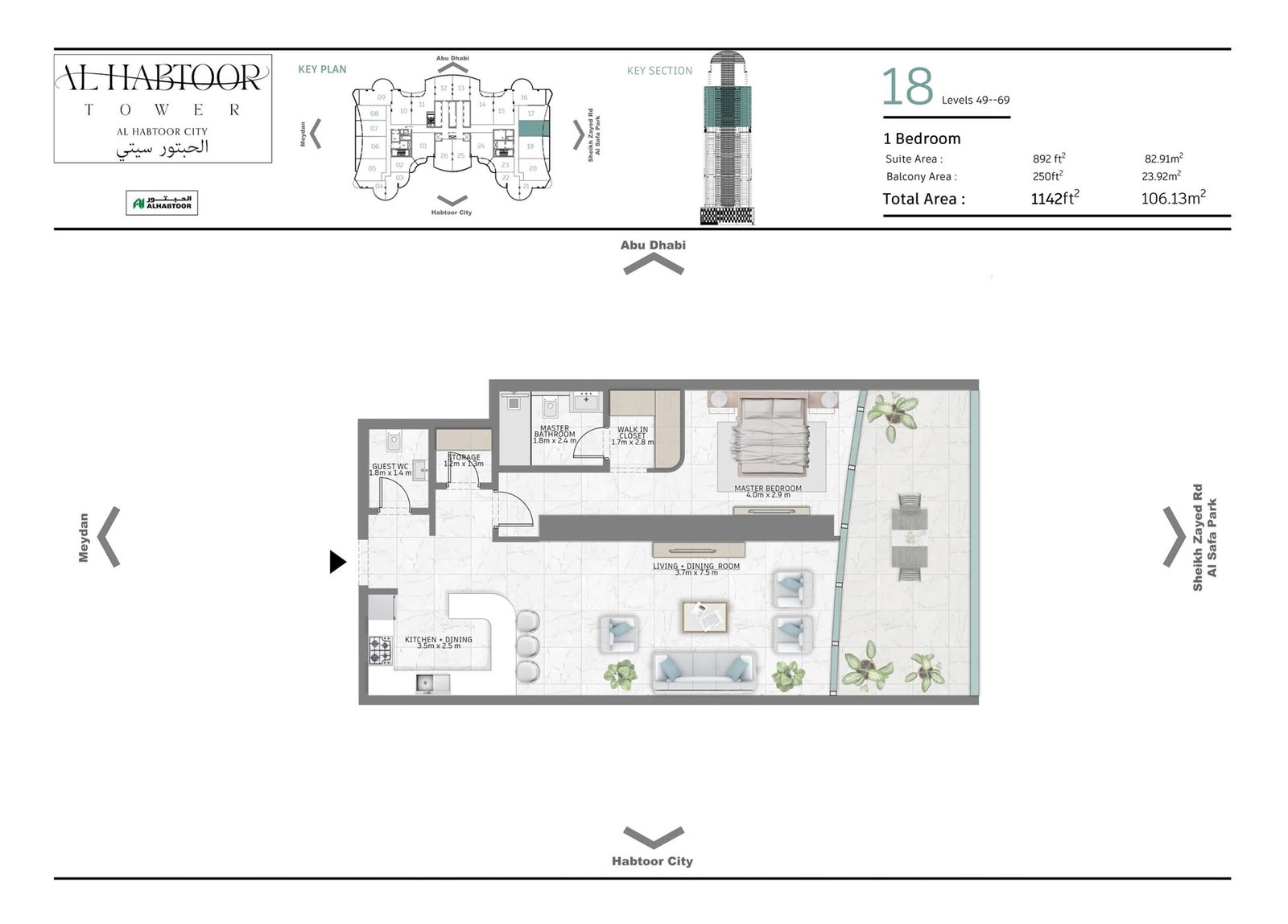 1 Bedroom - 1 Bedroom, Level 49-69 1142.00 Sq Ft Apartment