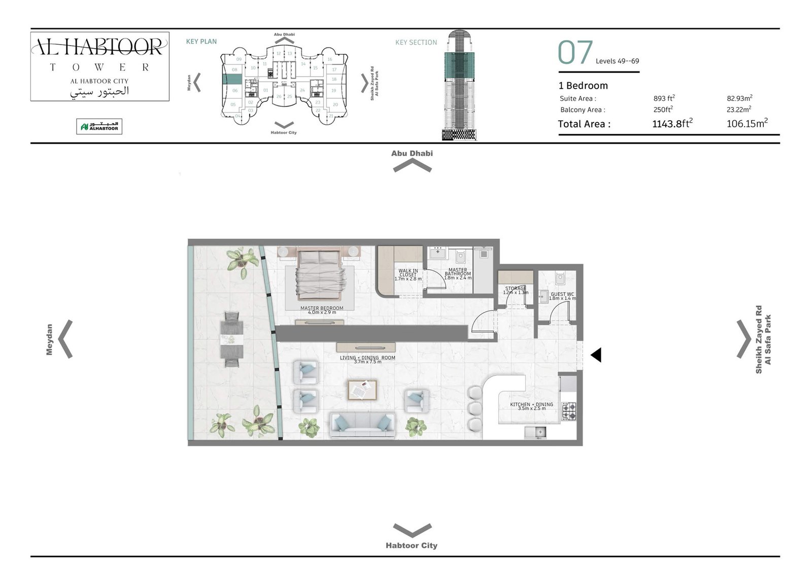 1 Bedroom - 1 Bedroom, Level 49-69 1143.08 Sq Ft Apartment