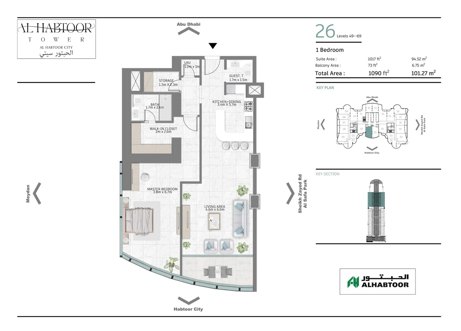 1 Bedroom - 1 Bedroom, Level 49-69 1090.00 Sq Ft Apartment