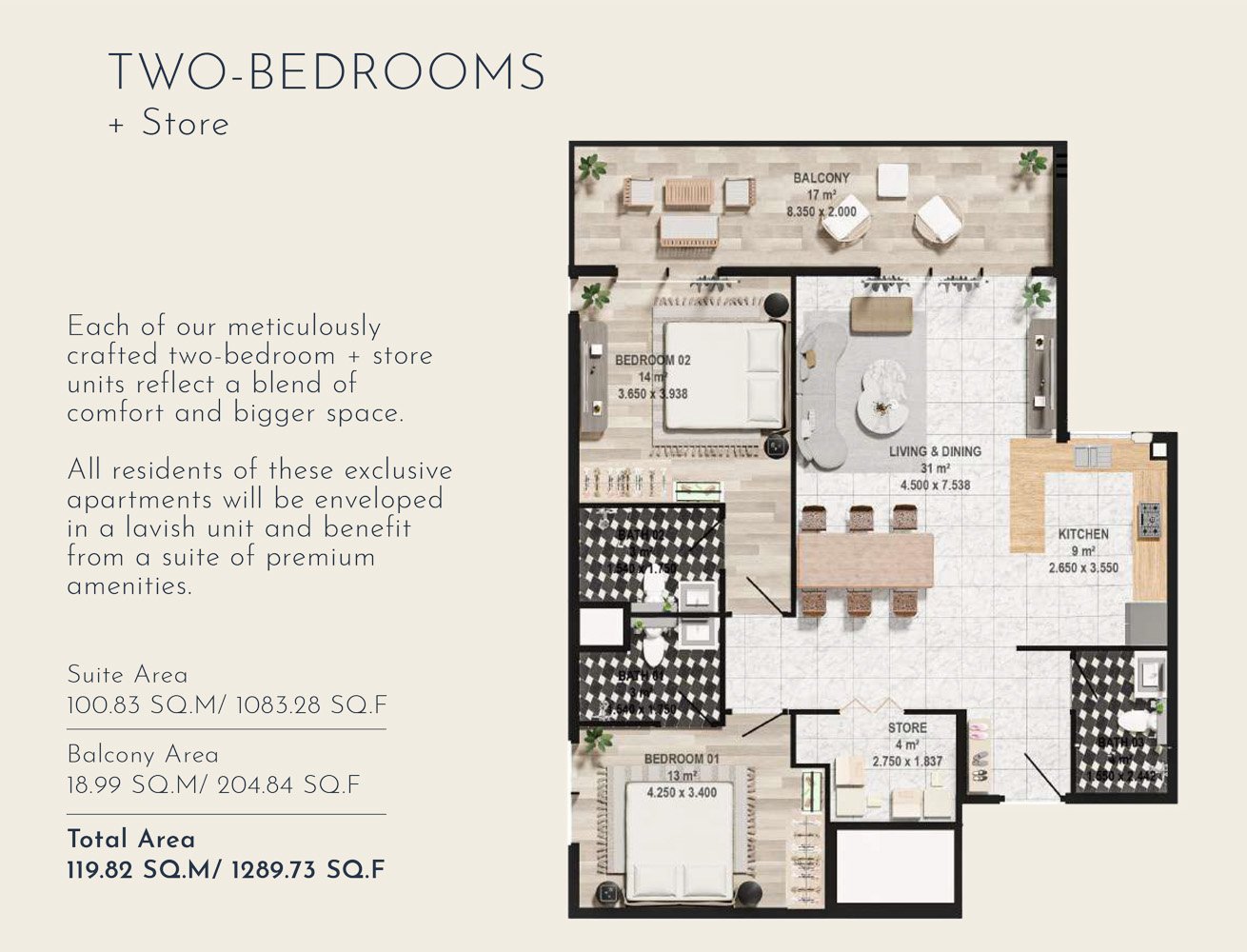 2 Bedroom - 2 Bedroom 1289.73 Sq Ft Apartment