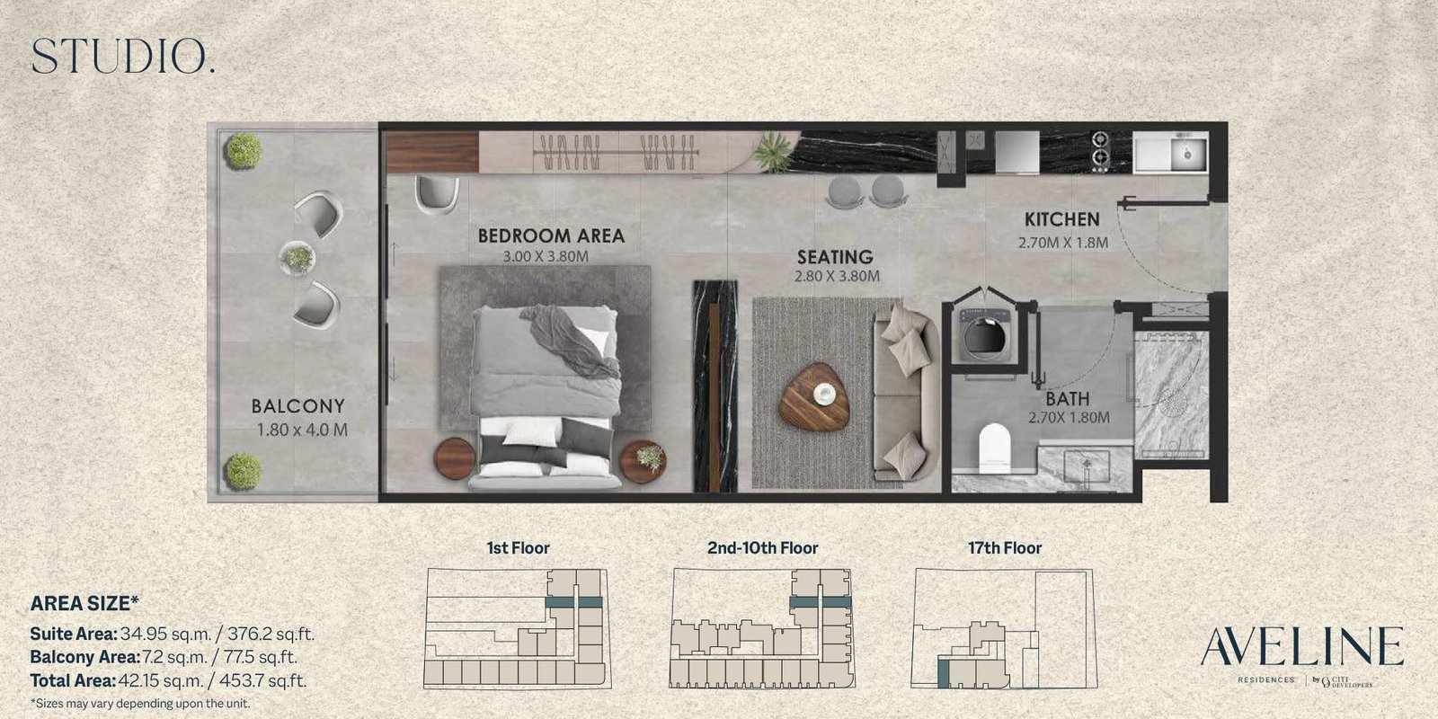 1st-17th Floor - Studio 453.70 Sq Ft Apartment