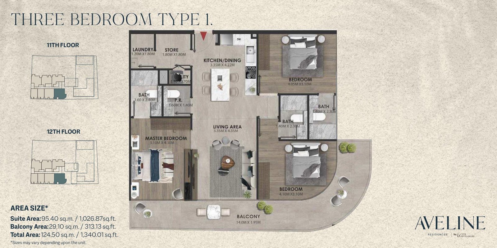 11th & 12th Floor - Type 1 1340.01 Sq Ft Apartment