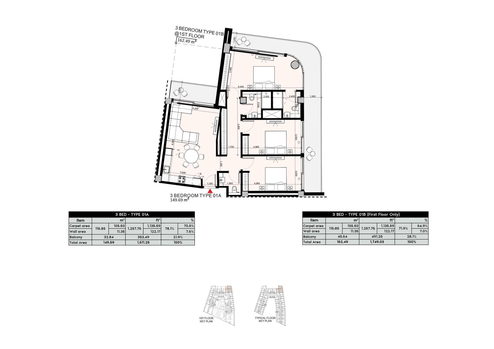 3 Bedroom | - | TYPE O1A & 01B | 1749.03 Sq Ft | Apartment |