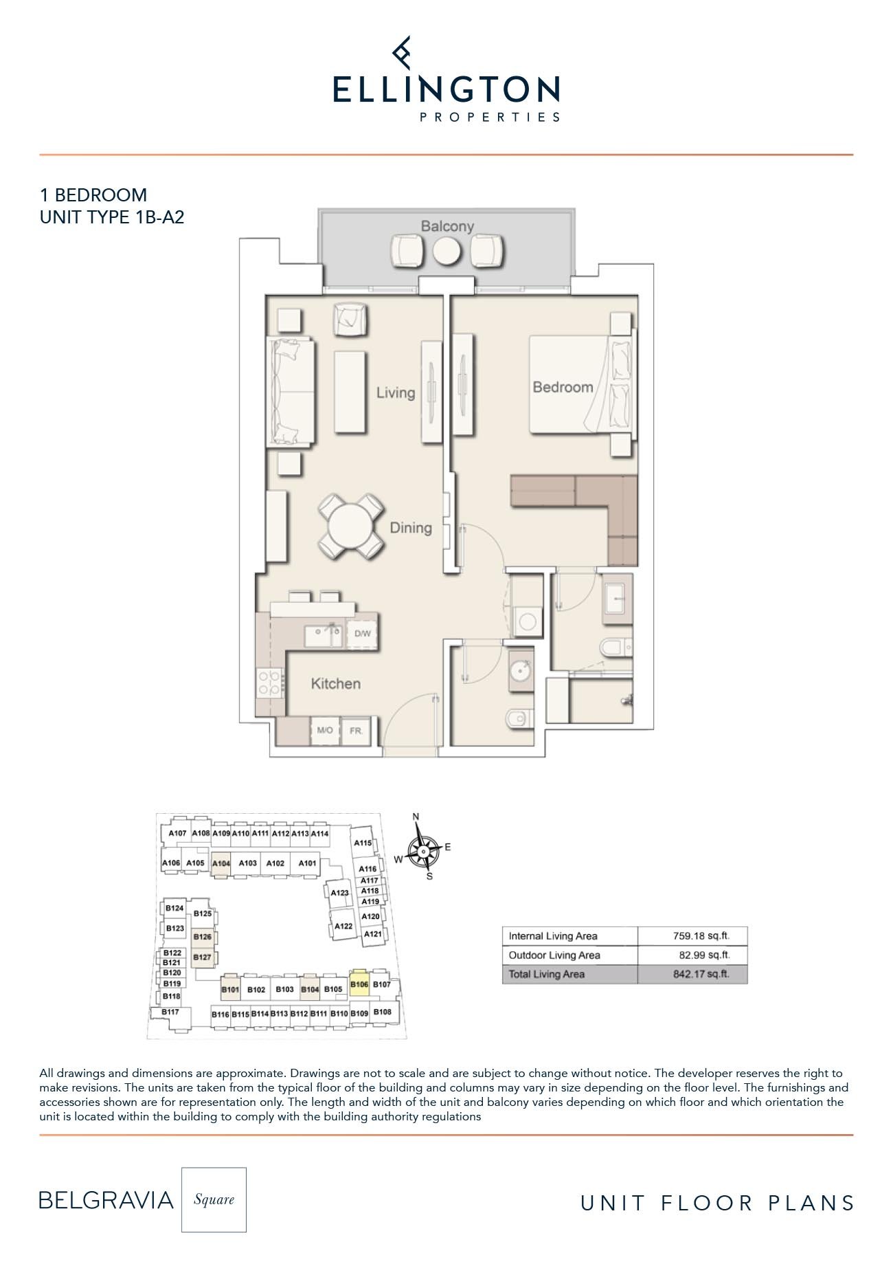 Unit - TYPE 1B-A2 842.17 Sq Ft Apartment