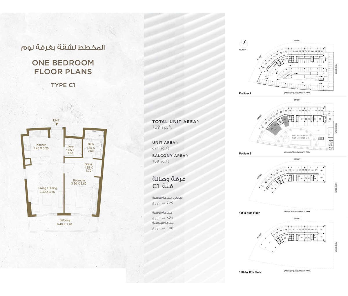 1 Bedroom | - | 1 Bedroom Type C1, Size 729 sq.ft | 729.00 Sq Ft | Apartment |