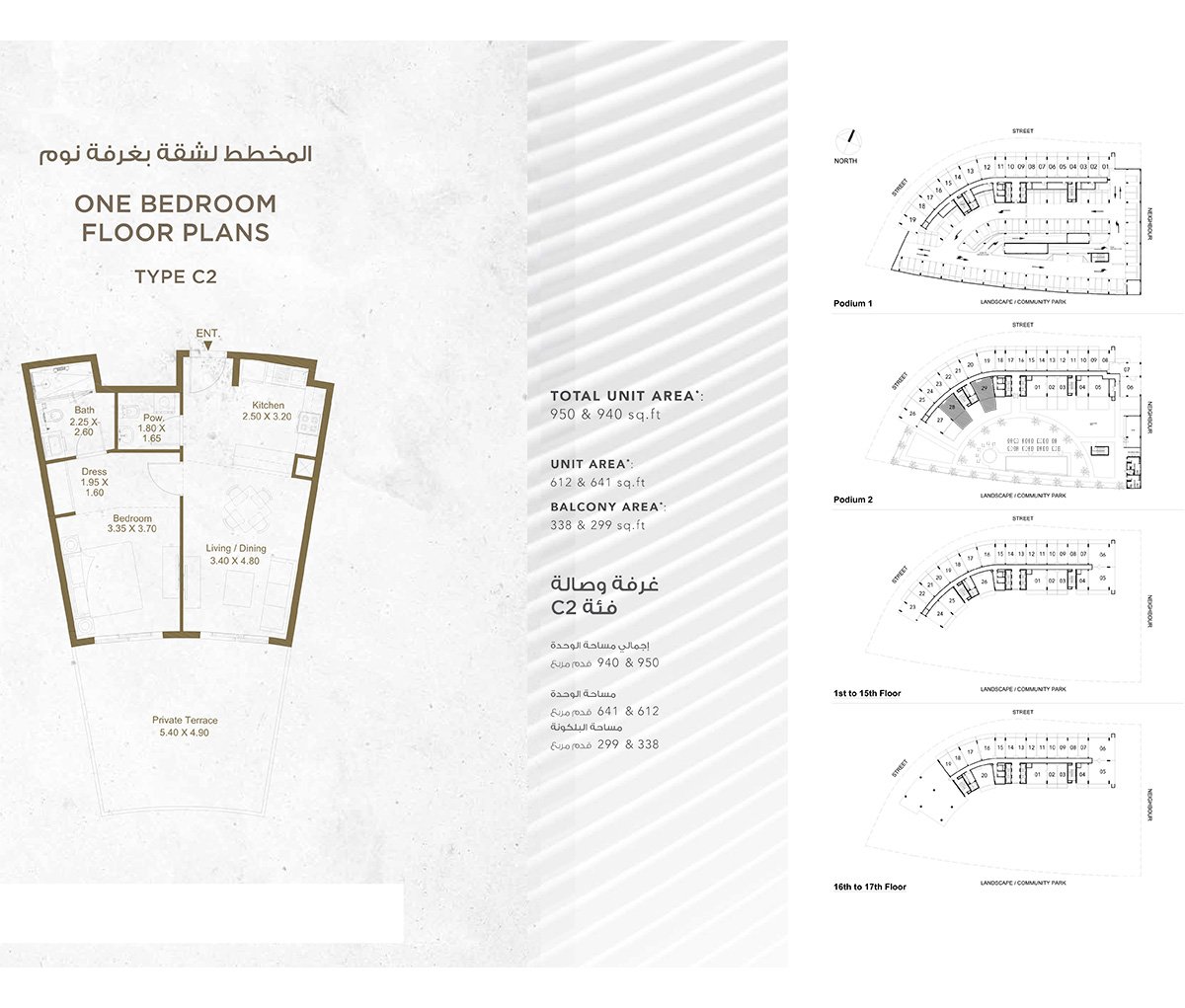 1 Bedroom | - | 1 Bedroom Type C2, Size 950 sq.ft | 950.00 Sq Ft | Apartment |