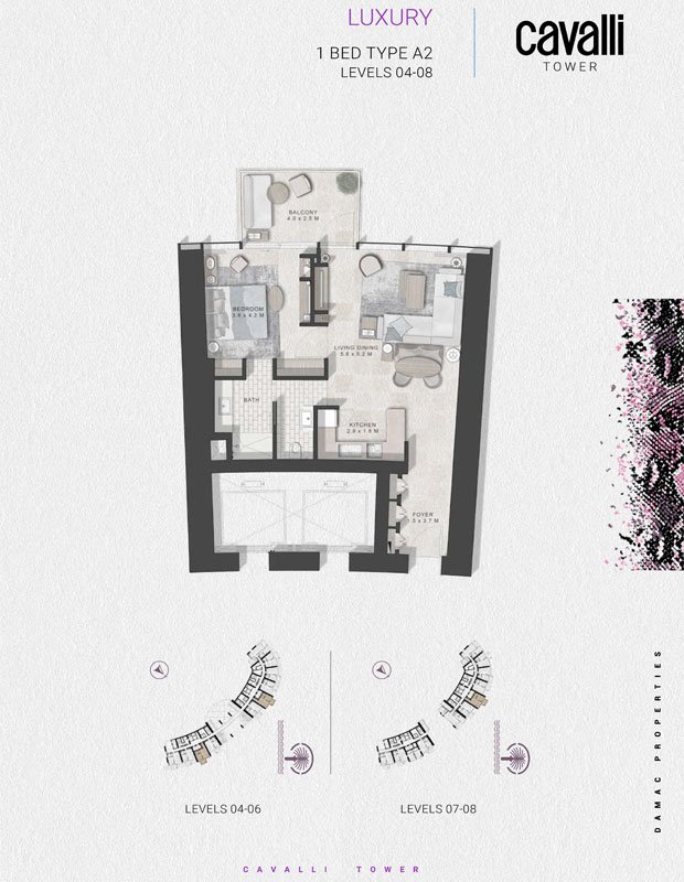 Cavalli Tower by Damac Properties represents a groundbreaking development in Dubai Marina, featuring luxurious 1, 2, and 3-bedroom apartments with stunning beach and palm views, complemented by premium amenities. This impressive 70-storey high-rise is crafted by the esteemed architect Shaun Killa, known for his award-winning designs, and is exclusively available to a select few. Situated in the prestigious Al Sufouh, a prominent neighborhood in Jumeirah, Dubai, the development spans 7 square kilometers on the northwestern side of Dubai Marina, offering seamless access to the rest of the city without any significant obstacles. Experience life in the only Cavalli-branded tower globally, boasting uninterrupted vistas of the Palm, Burj Al Arab, and the iconic Dubai skyline. The interior features tranquil elements, including an indoor waterfall and various elegant water features, creating a serene environment. Enjoy breathtaking views of the Palm Jumeirah from the six exclusive design jet elevators that traverse this artistic tower, providing an exceptional perspective of the stunning sea. Revel in the sun and embrace the refreshing breeze, all from the comfort of your home. Residents can take advantage of a 900-square meter beach pool with on-demand food and beverage service, making it an ideal spot to unwind and rejuvenate. Furthermore, this luxury development offers an unparalleled dining experience on the 58th level, curated by renowned chefs. Simply relax and indulge in a meal at the thoughtfully designed sky garden, which provides a delightful atmosphere. Key highlights include the newly launched luxury development by Damac, beach and palm-facing apartments, the exclusive Cavalli-branded tower, designer apartments with beach access, 24/7 views of the Palm, Burj Al Arab, and Dubai skyline, exceptional water features including beach and private pools, captivating outdoor and Cavalli-inspired interiors, and an attractive and flexible payment plan.