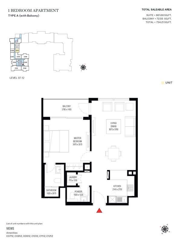 1 Bedroom | - | Type A (with Balcony) | 734.21 Sq Ft | Apartment |