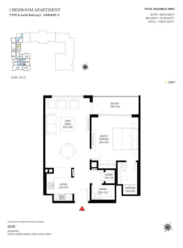 1 Bedroom | - | Type A (with Balcony)-Variant 3 | 733.67 Sq Ft | Apartment |