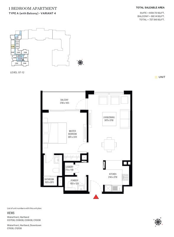 1 Bedroom | - | Type A (with Balcony)-Variant 4 | 727.86 Sq Ft | Apartment |