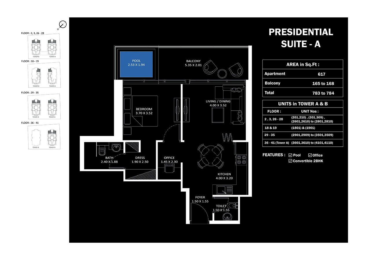 Tower A & B | - | Presidential Suite-A | 784.00 Sq Ft | Apartment |