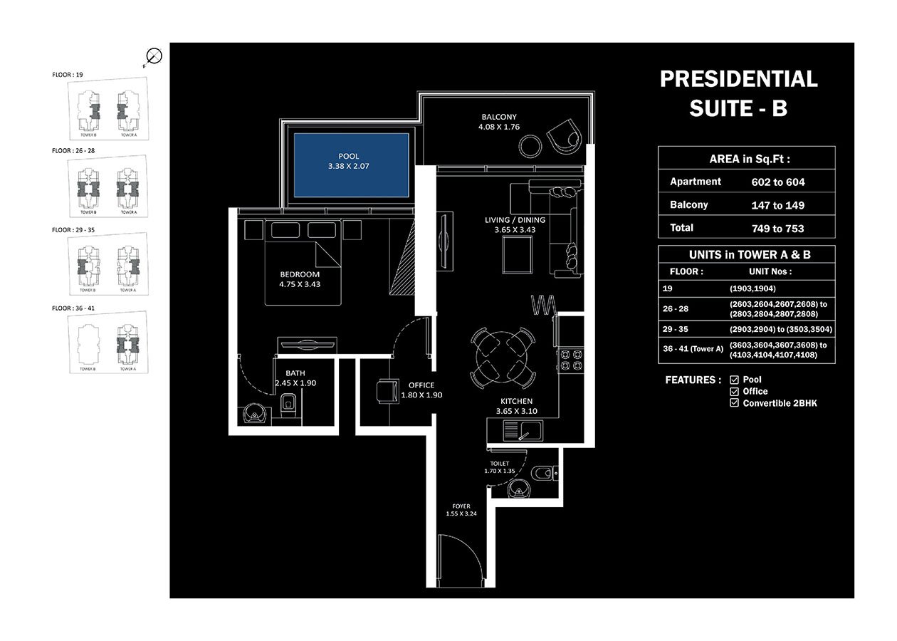 Tower A & B | - | Presidential Suite-B | 753.00 Sq Ft | Apartment |